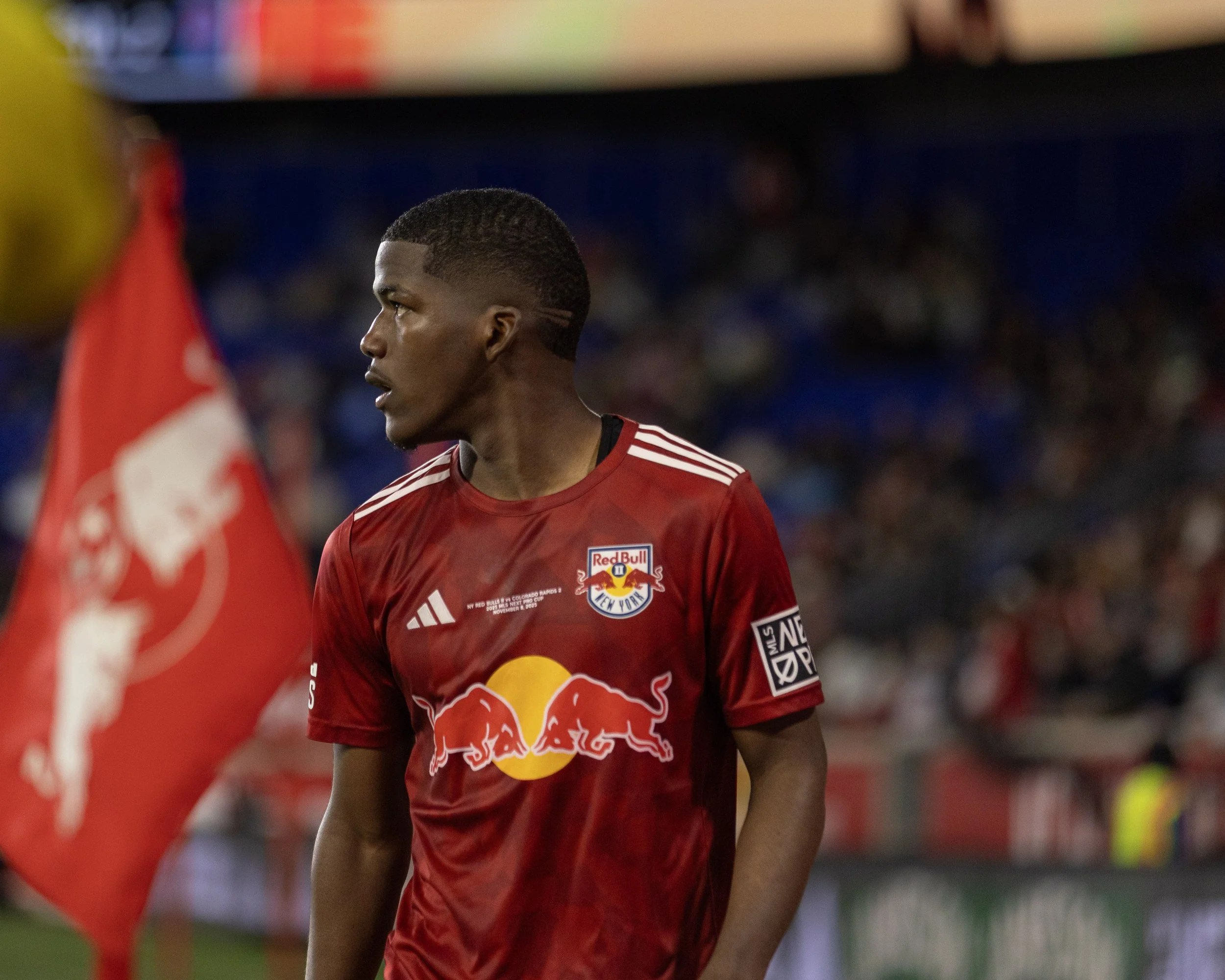 Rafael Mosquera looking towards the field at the MLS Next Pro Cup Final at Sports Illustrated Stadium on November 8, 2025. Photo by John Illge.